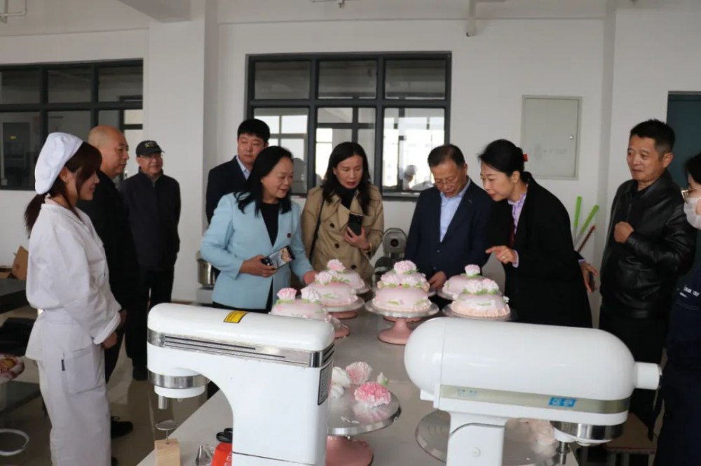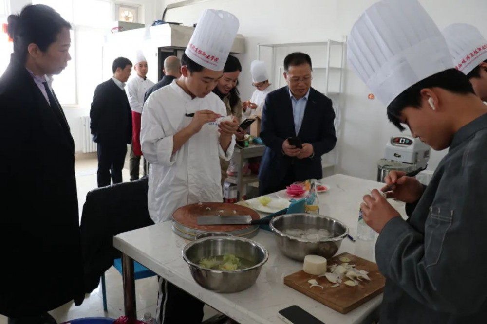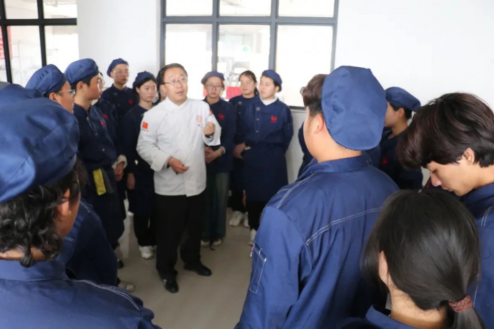 参观我院智能食品加工生产基地、研学基地、走进烹饪艺术学院师生烘焙专业、西餐面点、糕点、雕刻教学课堂。